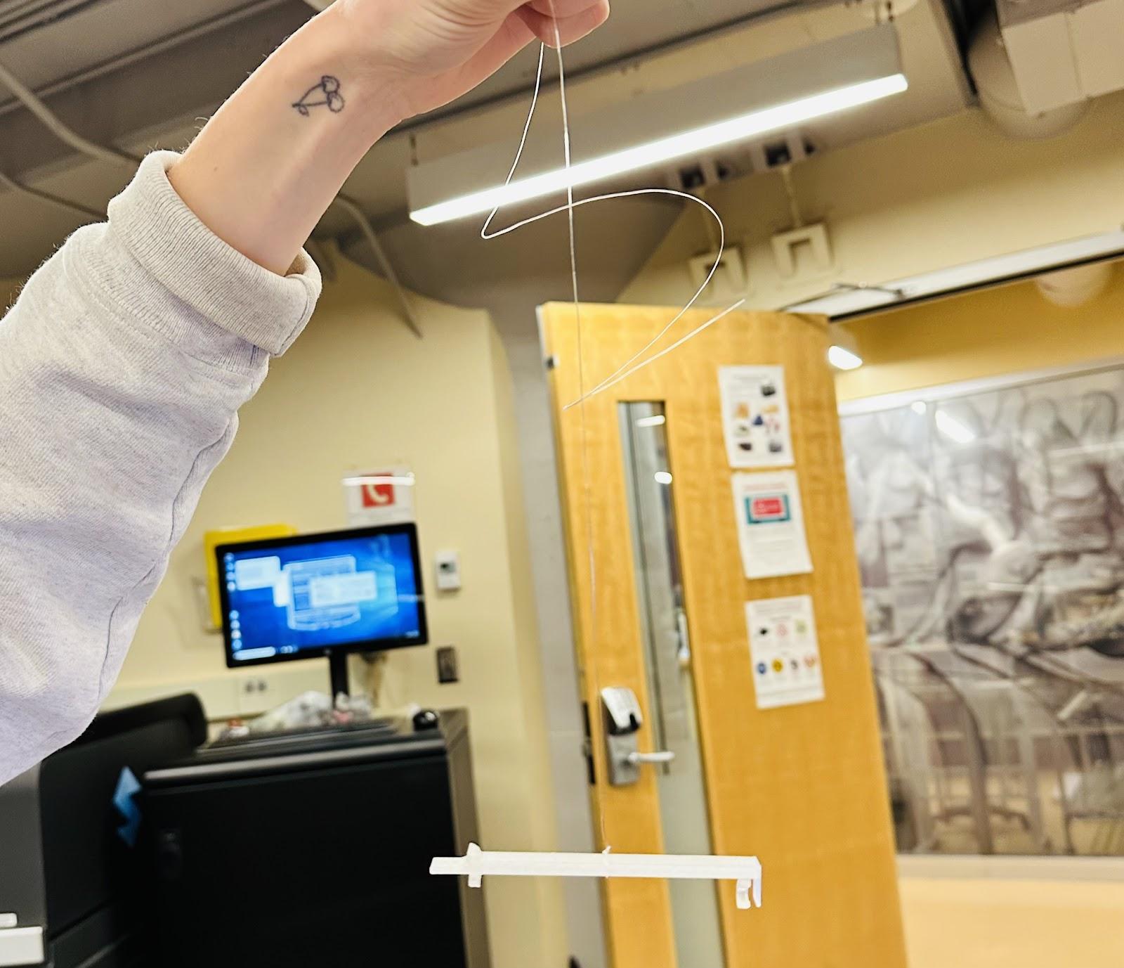 This test aimed to measure the center of mass (COM) of the device. This was accomplished both experimentally and theoretically. First, a string was tied loosely to the device, and was slid around until the device was suspended perfectly horizontally. For the theoretical approach, Solidworks was used to predict the COM based on the CAD file.